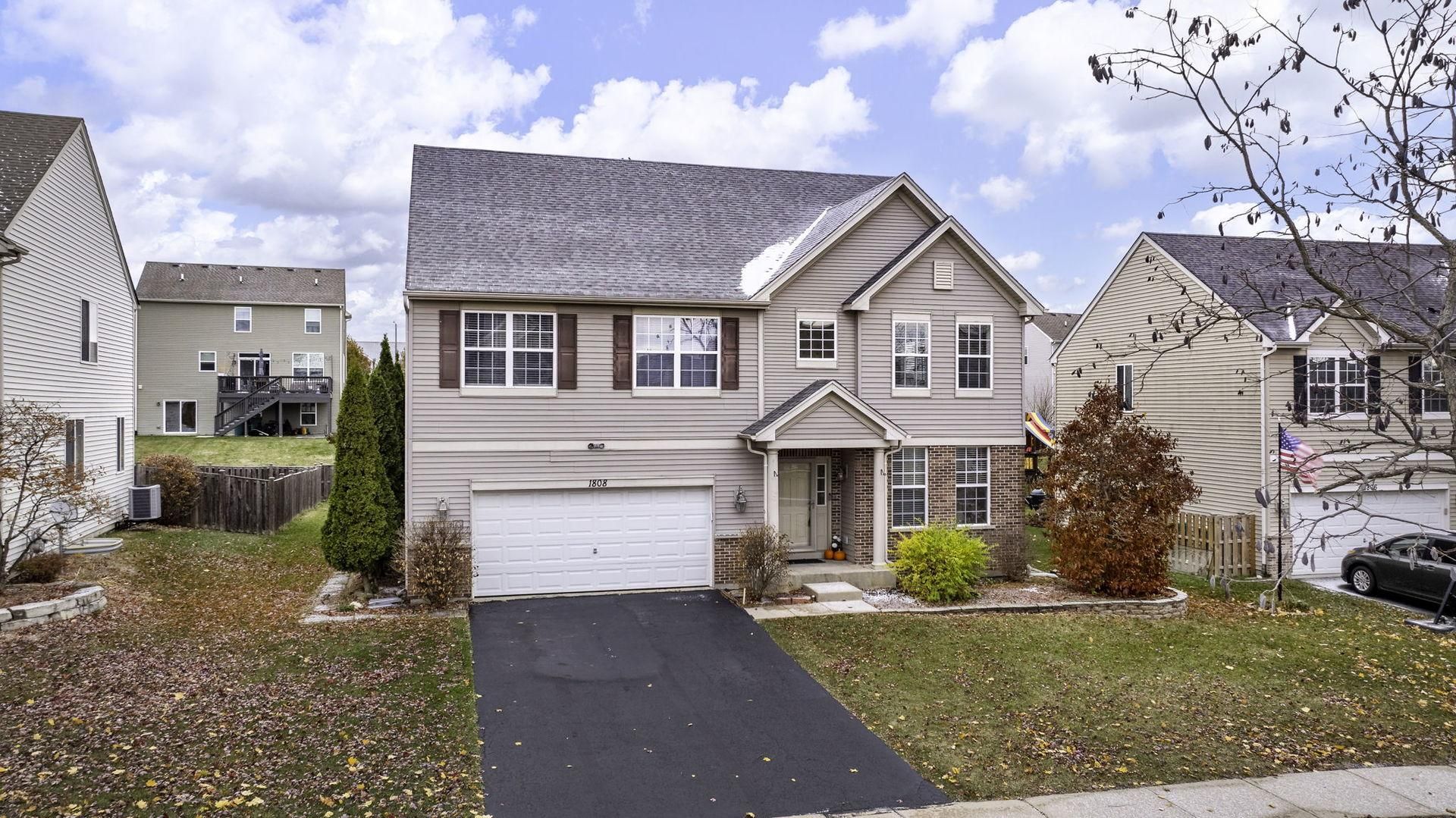Welcome to 1808 Wild Rose Trail in the highly desired Greywall Club Subdivision of Joliet, IL - a home that blends everyday comfort with thoughtful updates and effortless living. Step through the covered front entry with sidelight into a soaring two-story foyer where natural light floods the open floor plan and highlights the rich wood-look laminate flooring throughout. The heart of this home is the spacious two-story great room, perfect for relaxing evenings or lively gatherings. Flow seamlessly into the updated kitchen featuring stainless steel appliances, abundant cabinet and counter space, a breakfast bar island, and a double pantry - a true hub of comfort and convenience. The main level also offers a versatile use space - ideal as a home office or guest room - plus a powder room and a generous laundry room with newer washer and dryer. Upstairs, you'll find four well-sized bedrooms, including a primary suite with vaulted ceilings, dual closets (one a walk-in), and an ensuite bath with both a soaking tub and separate shower. Each guest bedroom offers ample space and easy access to the full bath. The partially finished basement expands your living footprint with room for recreation, hobby space, or play. Outdoor living is just as inviting. A large fenced backyard and patio provide a serene setting for barbecues, morning coffee, or summer play. Practical updates include a fresh interior paint (2024), new garage door opener (2023), and a tear-off roof with updated sump pump (2022). Leased solar panels help keep electric bills around $20/month, offering both value and eco-savvy savings. Residents enjoy access to community amenities like the clubhouse, fitness facilities, pool, and nearby parks, perfect for active lifestyles and neighborhood connection. With nearby schools and quick access to area conveniences, this home delivers comfortable living with thoughtful touches at every turn.